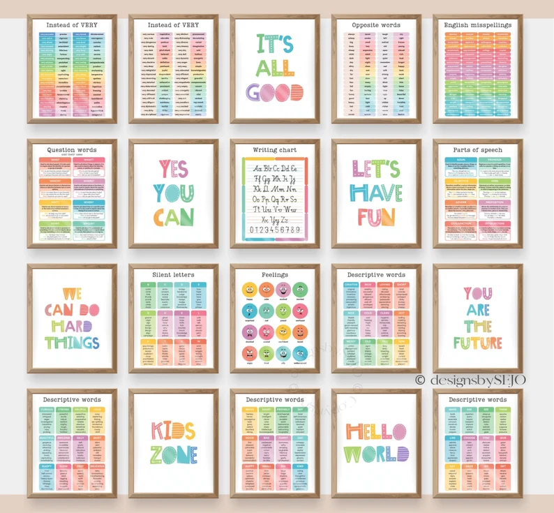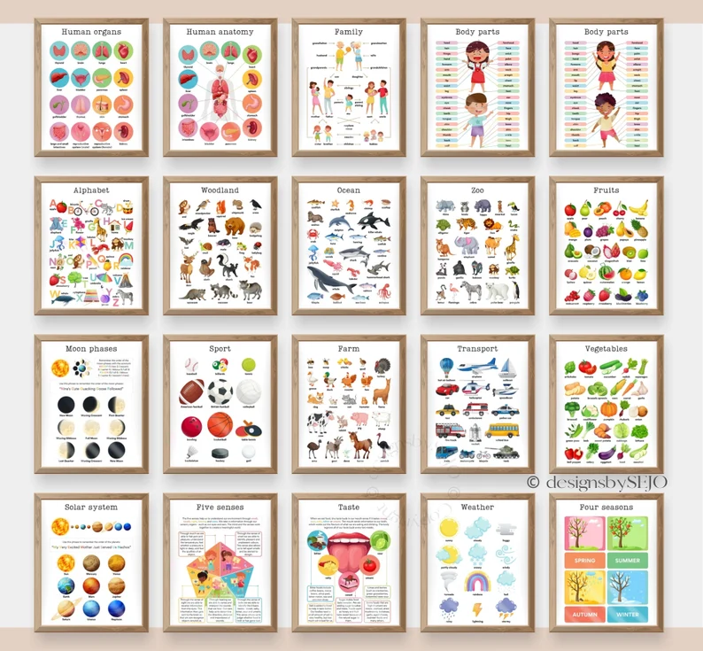 Set of 101 Educational Posters - Colorful Wall Art for Kids' Learning and Playroom Decoration